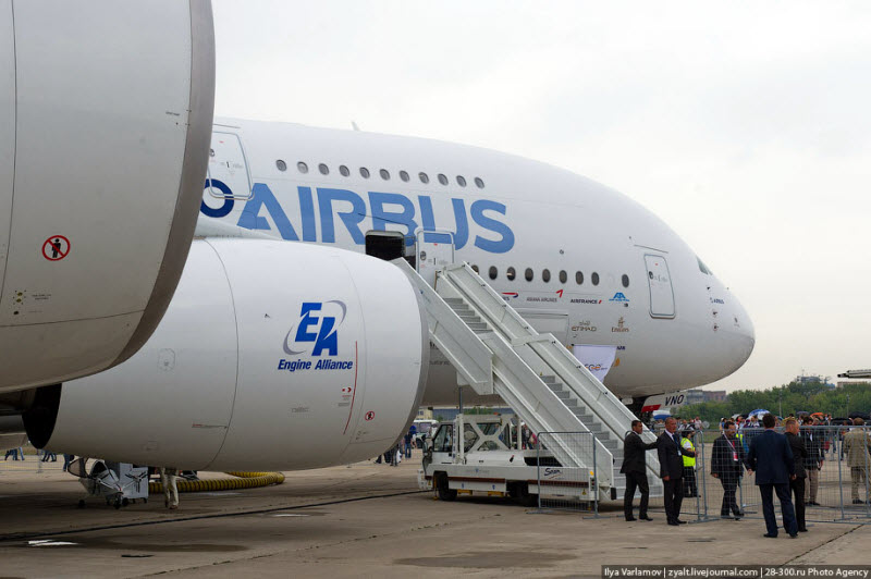 I was not a published report from the Paris Air Show the MAC 2011. One day I managed to get on board the Airbus A380. At Max was introduced the plane on which various tests are conducted, so that instead of inside the cabin were barrels of water, a lot of different equipment and wiring. So get ready to see the exclusive complete and comprehensive overview of Air Bus A-380. We all knows its dream of every person of the world to get the chance of flying on Air Bus A-380 but the problem is that its very luxurious kind of plane so dont worry here i give you peoples to see the exclusive photos of Air Bus A-380 here.